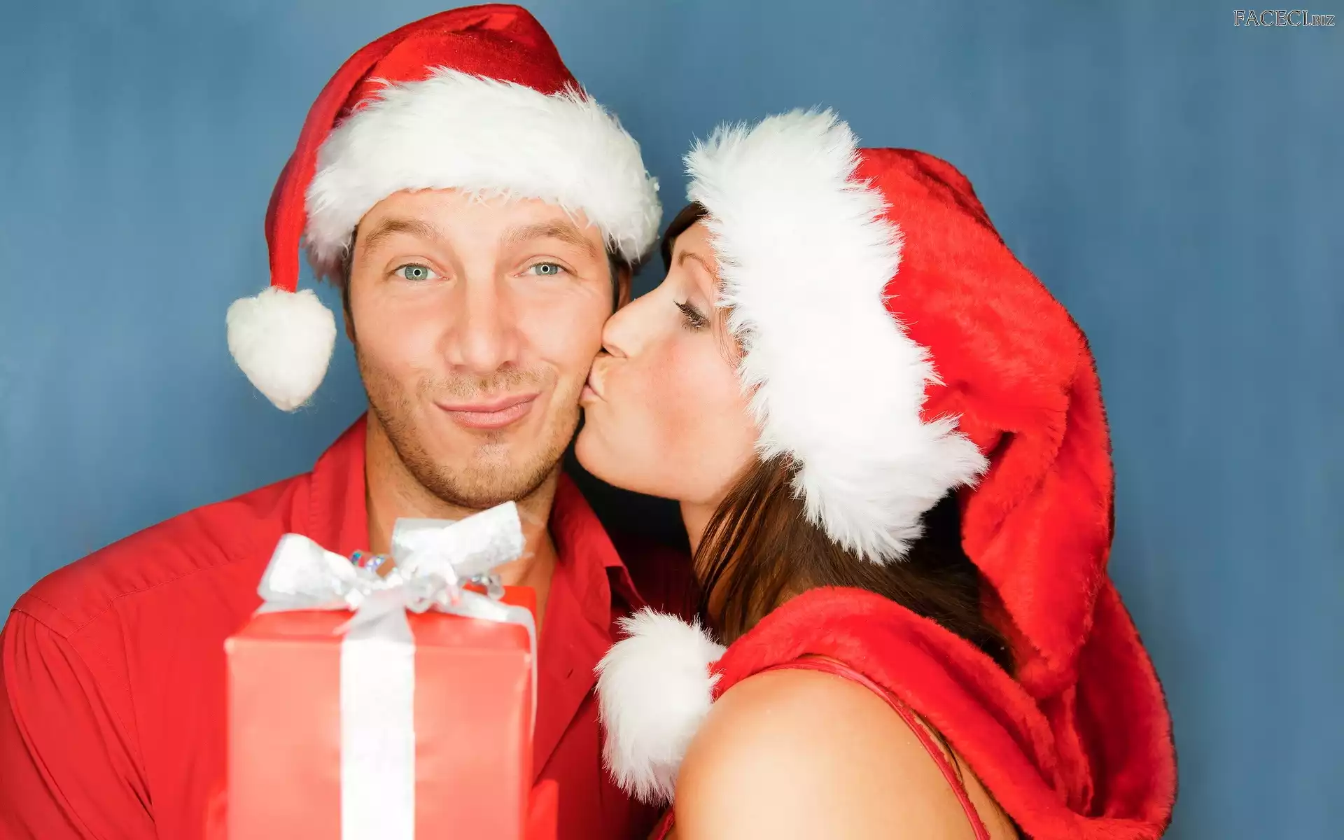 Czerwona, Para, Całus, Mikołaja, Prezent, Czapki - faceci.biz